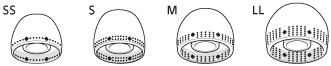 - Pruebe almohadillas de diferentes tallas (de mayor a menor) hasta encontrar el ajuste adecuado. Las tallas izquierda y derecha pueden diferir.